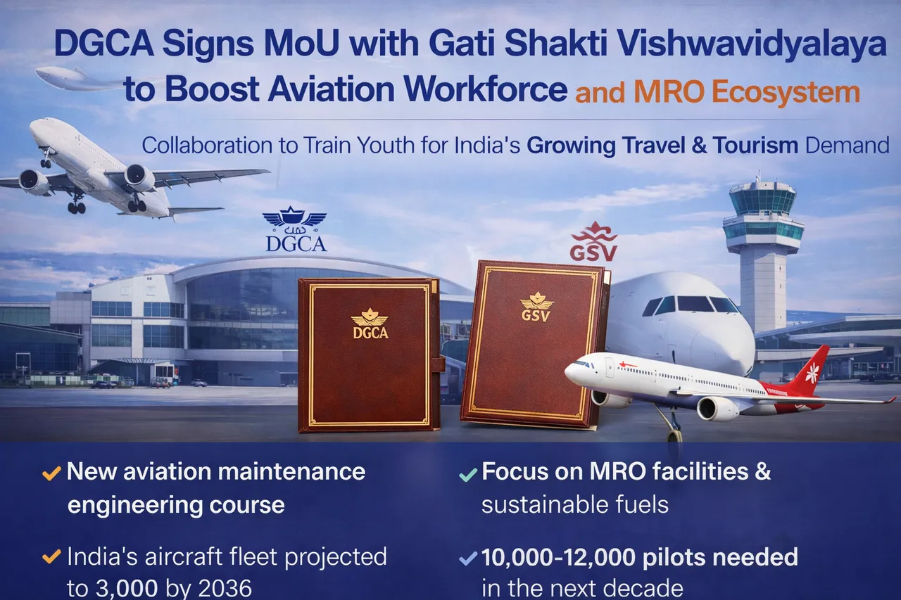 In a move aimed at strengthening Indiaβs aviation ecosystem and supporting the countryβs rapidly growing travel and tourism sector, the Directorate General of Civil Aviation (DGCA) has signed a Memorandum of Understanding (MoU) with Gati Shakti Vishwavidyalaya (GSV) to enhance aviation education, training, and research.